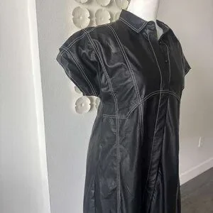 THML Black Faux Leather Mini Dress with Contrast Stitching – Size M