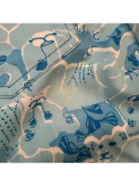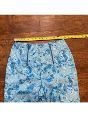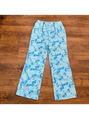 Vintage 1970s Lilly Pulitzer orange label Lion cub safari blue and white printed straight leg pants