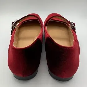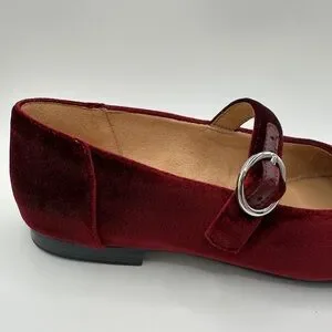 Classic Mary Jane flats in Cabernet Sauvignon. Soft velvet-like upper for a refined look. Cushioned insole for all-day comfort. Versatile style that pairs with dresses or jeans. Burgundy color adds a rich, elegant touch.