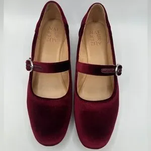 Naturalizer Kelly Velvet Mary Jane Flats in Cabernet Sauvignon