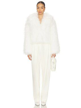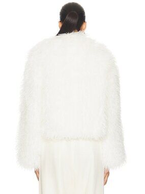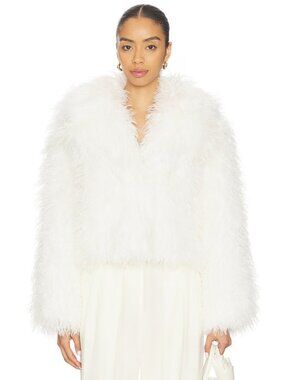 Hudson Jeans Mongauxlian Cropped Coat in Natural Faux Fur Ivory S NWOT $325