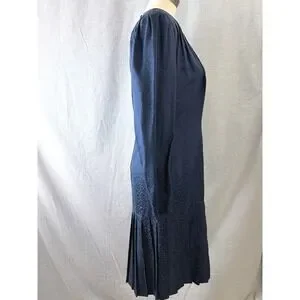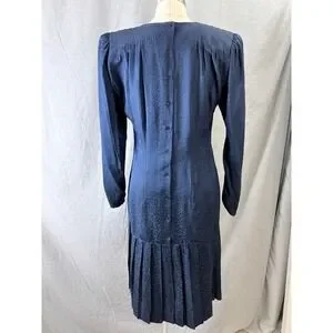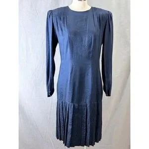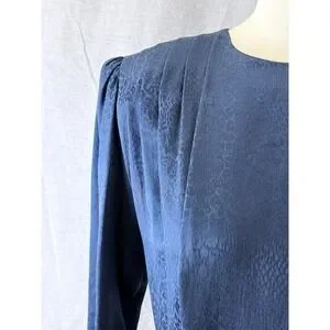 Argenti Vintage 80s Silk Leopard Jacquard Drop Waist Dress Navy 10 Dark Academia