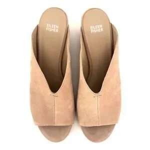 Eileen Fisher "Katniss" Tan Nubuck Open Toe Slides Size 10 Neutral