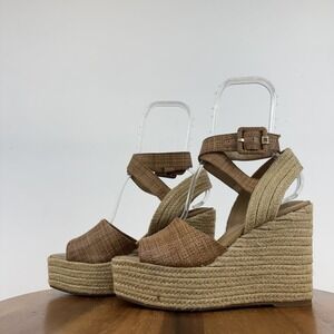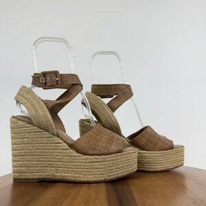 New Womens Sam Edelman Vada Tan Strappy Woven Espadrille Wedge Sandals Size 9 M