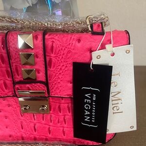 NWT Hot Pink Women's Crossbody Bag with Stud Accent