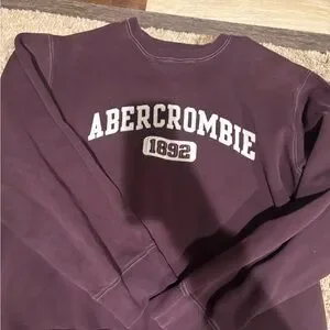 Soft crewneck sweatshirt in deep wine color. Features bold white Abercrombie lettering and stitched 1892 patch. Comfortable midweight fabric for everyday wear. Easy to pair with casual outfits.