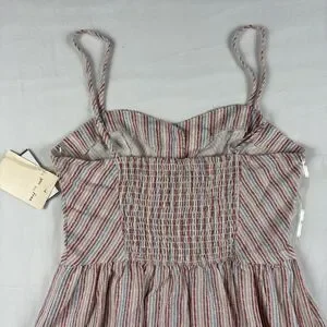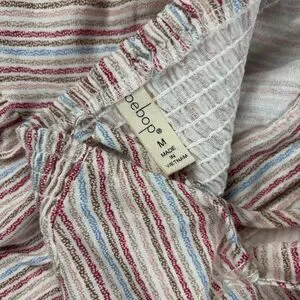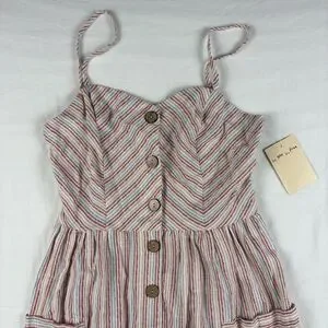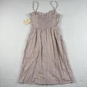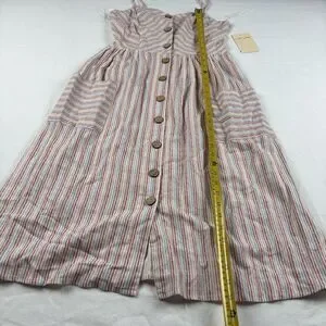 The BeBop Spaghetti Strap Linen Button Front Pocketed Midi Dress in size M and pink color is a stylish and versatile piece for women. With its sleeveless design, button closure, and midi length, this dress is suitable for various occasions such as traveling, parties, casual outings, and formal events. Made from a blend of viscose and linen, it offers comfort and breathability, perfect for the warmer seasons of summer, fall, and spring. Featuring a striped pattern, strap accents, and convenient pockets, this dress from BeBop is a chic addition to any wardrobe.