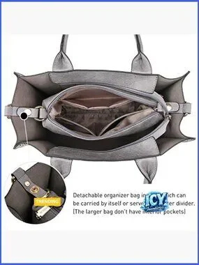 Faux Leather Tote Satchel Shoulder Bag Set with Wallet & Cosmetic Bag