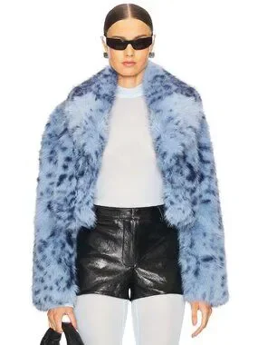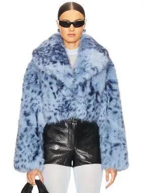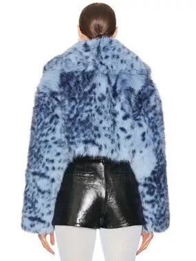 LAMARQUE Danika Faux Fur Coat in Blue Leopard M NWOT $425