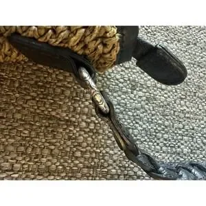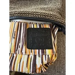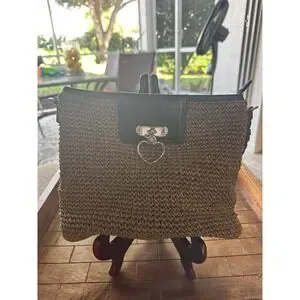 Vintage Brighton Straw Leather Heart Charm Shoulder Bag Women's Tan Black