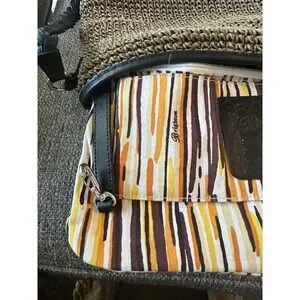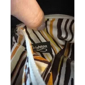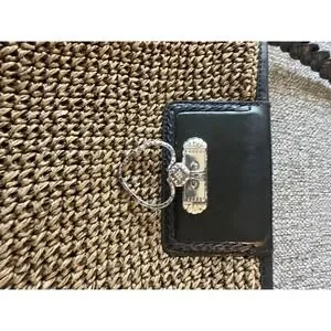 Capture sunny days and breezy evenings with this charming vintage Brighton shoulder bag. Its woven straw body brings a touch of natural texture, beautifully complemented by sleek black leather accents. The delightful heart charm dangling from the front closure adds a whimsical, romantic flair, making it a perfect accessory for any outfit. Inside, a vibrant striped lining adds a pop of color and features convenient pockets to keep your essentials organized. Carry it effortlessly to brunch with friends or on a stylish weekend getaway.