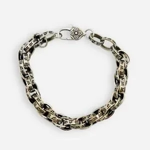 Silver Mantra Bracelet Buddhist Meditation Double Anchor Chain