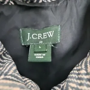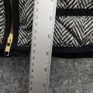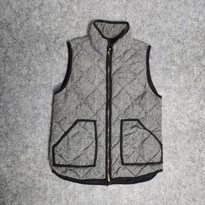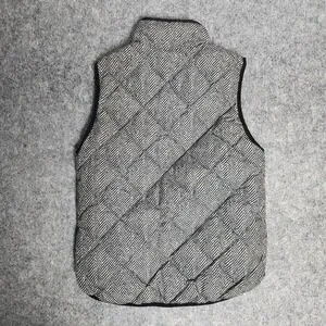 J Crew Quilted Puffer Vest Women L Down Blend Black Gray Herringbone Chevron