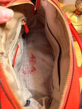 Michael Kors Red Saffiano Satchel with Gold Hardware