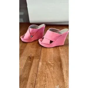 Charles By Charles David Pink Wedge Suede Sandals SZ 6 Very good condition with spot on heel see photo.