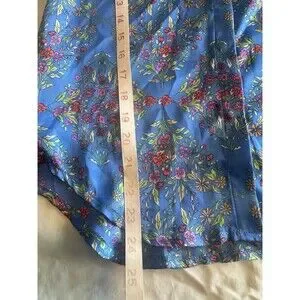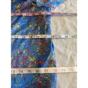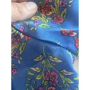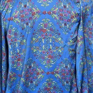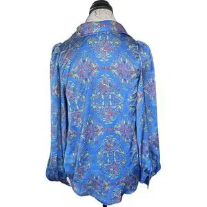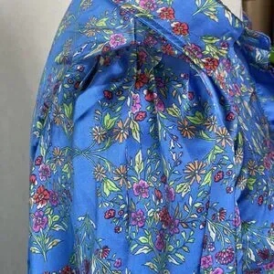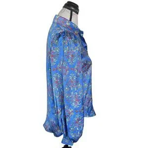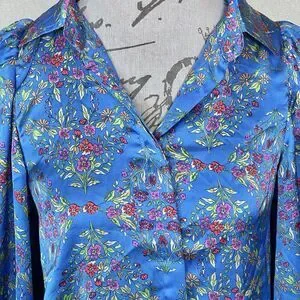 Olivaceous Womens Blouse Sz Small Satin Floral Button down Blue Spring Summer Pleated Old money,Colorful, Botanical Boho Bohemian Feminine Romantic Garden Party
