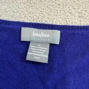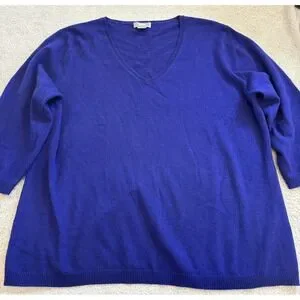 Neiman Marcus Cashmere Sweater Womens 2X Royal Blue V-Neck 3/4 Sleeve Pullover