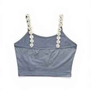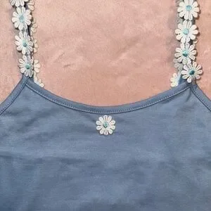 ROMWE Blue Daisy Embroidered Feminine Floral Straps Cropped Cami, Size XS