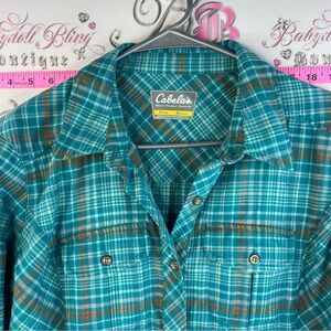 Cabela's button up long sleeve shirt Teal and Brown Plaid Button-Front Shirt