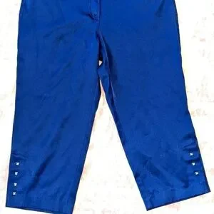 Sleek Blue Silky Capris with Silver Accents
