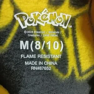Tag details: 2023 Pokémon; flame resistant; made in China