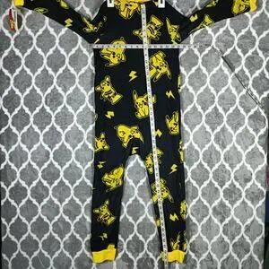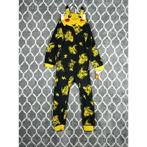 Pokemon Pikachu One Piece Pajamas Youth Medium 8/10 Black Yellow Hooded Fleece