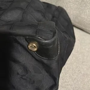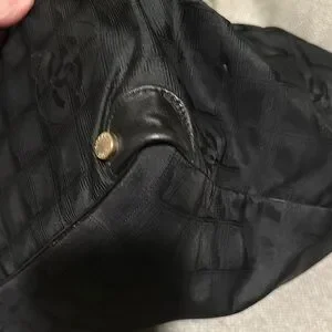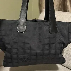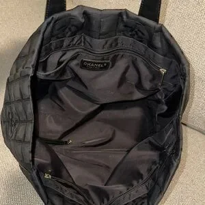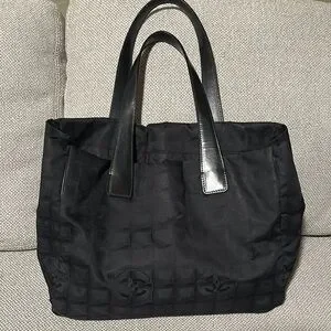 Chanel New Travel Line Tote in black. This lightweight, durable bag was a hallmark of Chanel's travel-inspired collections in the early 2000s