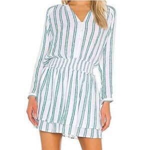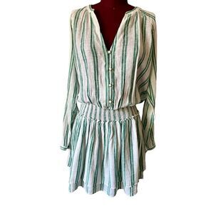 NEW RAILS Jasmine Dress Size L Green White Linen Blend Mini Long Sleeve