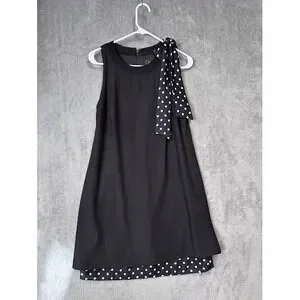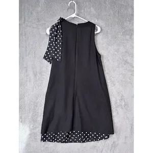 Keywords: Chelsea Rose dress, black dress, polka dot dress, sleeveless dress, A-line dress, womens dress, size 6 dress, cocktail dress, party dress, work dress, casual dress, tie detail dress, polka dot tie, black and white dress