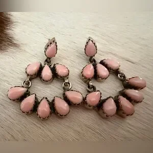 ❤️ Queen Pink Conch Navajo Style Statement 925 Dangle Chandelier Earrings 20.4Gm