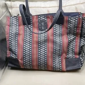 Tory Burch Navy and Red Patterned Tote Nylon Tory Burch
