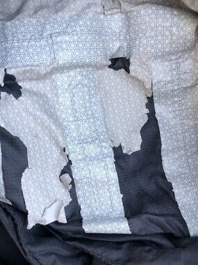 The inside lining of the jacket has cracks and is coming off as pictured.