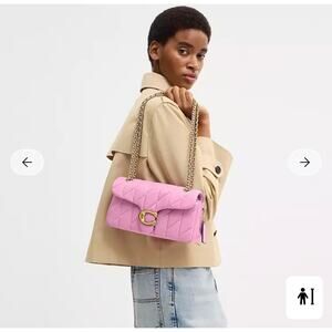 A modern take on an archival 1970s Coach design, our structured Tabby shoulder bag is crafted of quilted plush, ultra-soft nappa leather. Finished with our Signature hardware for an iconic touch, the compact 26 features a long leather chain strap to wear crossbody or double up for a shorter, dressier look.