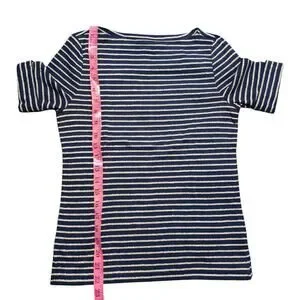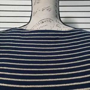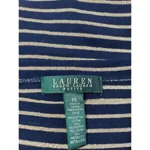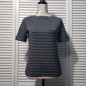 Ralph Lauren Short Sleeve Tee Women's Petite Small Black Gold Shimmer Striped Stretch Knit Top