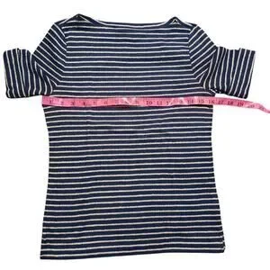 Ralph Lauren Short Sleeve Tee Women's Petite Small Black Gold Striped Knit Top