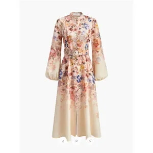 Add a touch of floral elegance to your wardrobe with this beautiful Commense dress! This dress features a flattering belted waist and stylish balloon sleeves, perfect for any occasion. The vibrant floral pattern adds a cheerful and feminine touch.