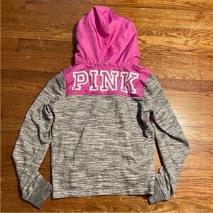 Used Pink by Victoria Secret Pullover half zip jacket with hood. PINK logo under hood