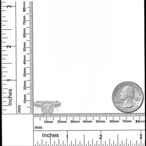 Measurements: 6x6mm cushion, near colorless Moissanite. 1.3x1.3mm round near colorless Moissanite