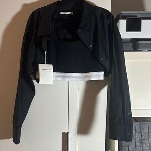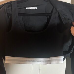Chic black layered top set by Alexander Wang. Includes a cropped shirt and tank with branding detail. Tank is sewed into the cropped shirt. Size large. Brand new with tags
