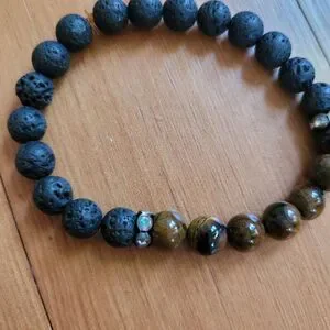 Set of 3 beaded bracelets faux crystal tiger's eye lava beads bohemian hippie