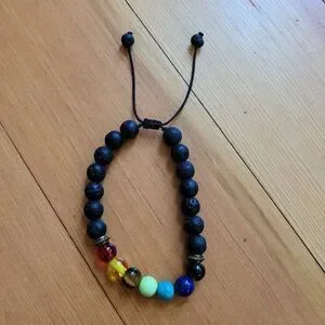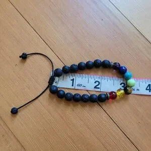 Set of 3 beaded bracelets stretchy elastic band faux crystals with lava beads. In excellent pre owned condition with no signs of damage.