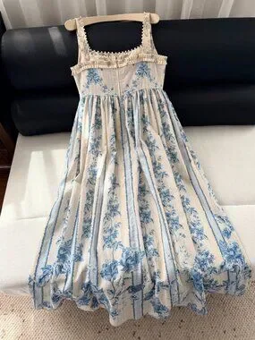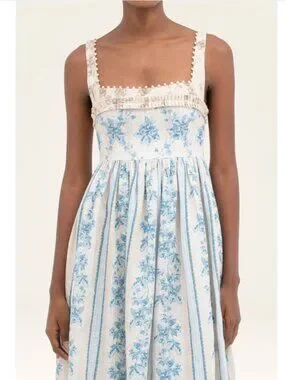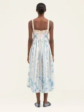 This midi dress features a clean square neckline, an elegant A-line silhouette, and a concealed back zipper, making it perfect for everything from a sunny brunch to a seaside dinner.