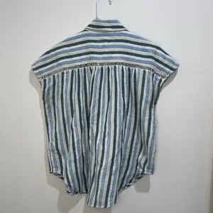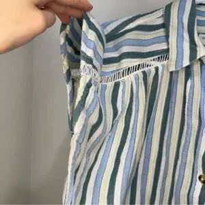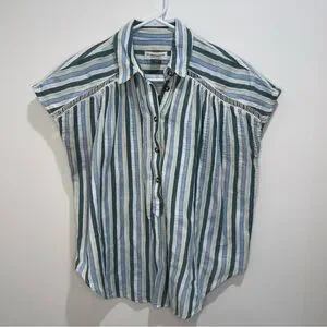 Anthropologie blouse, Pilcro blouse, Serena Surf Henley, striped blouse, sleeveless blouse, cotton summer top, boho blouse, casual top #anthropologie #pilcro #sleevelessblouse #henleytop #stripedtop #bohostyle #cottonblouse