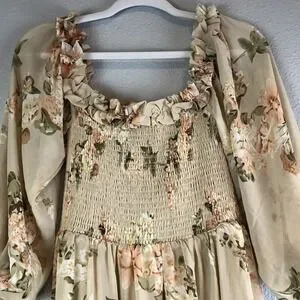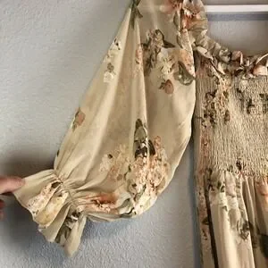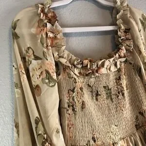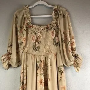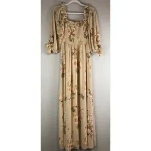 Aakaa Womens Babydoll Maxi Dress Small Floral Smocked Boho Cottagecore Elegant
