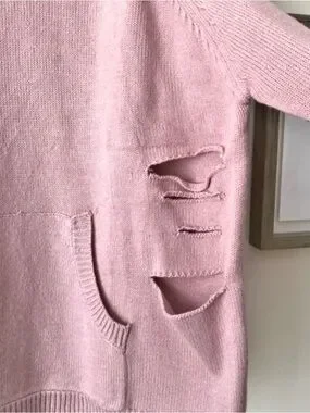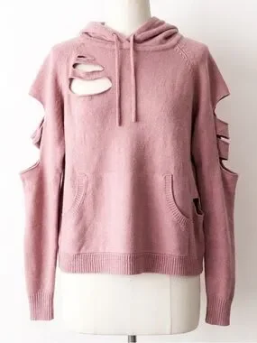 LOLA x LF Shredded Deconstructed Upcycled Knit Hoodie Sweater Dusty Rose Small