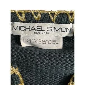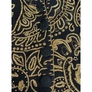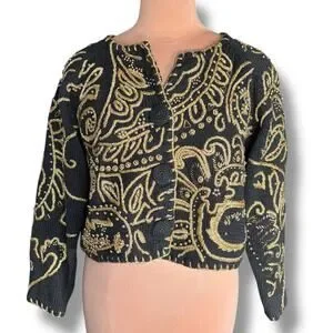 Vintage 90s Michael Simon Black Gold Metallic Embroidered Cropped Knit Cardigan
