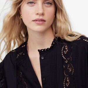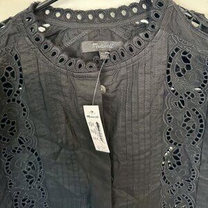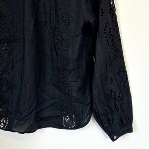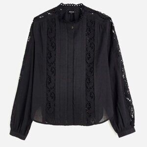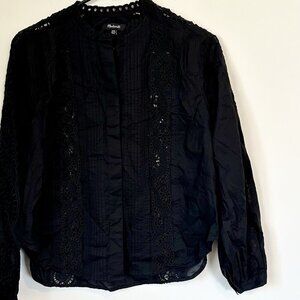 NWT Madewell Black Lace-Inset Pintucked Button-Up Top - Size: XXS
