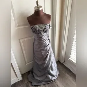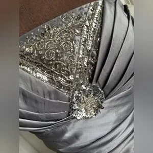 Shine in this elegant silver evening gown, perfect for special occasions. The dress features a stunning design that enhances your silhouette. Size 5 in great condition