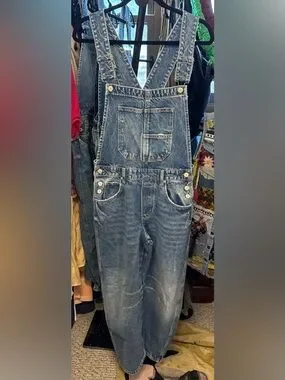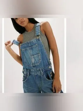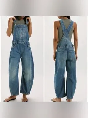 NWOT Free People We The Free Good Luck Barrel Overalls Ultra Light Beam - SMALL