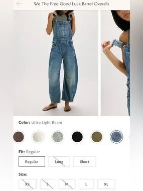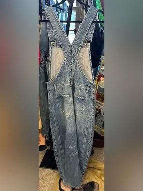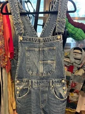 NWOT Free People We The Free Good Luck Barrel Overalls - Ultra Light Beam - SMALL